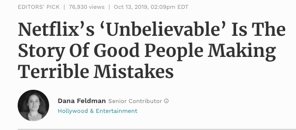 Above is an article about poor risk assessment. “unbelievable” is about the failures of a town and police department to help a survivor because people didn’t want to believe her. When people don’t believe survivors it is generally because admitting to the harm that was done to an innocent person means that you are somehow vulnerable to that harm, the uncomfortable feelings or the survivor’s guilt. This is an example of poor risk assessment because assessing risk does not just mean assessing the risk to ourselves, it includes assessing the risk for other people. As it is those outside of ourselves that comprise our environment.